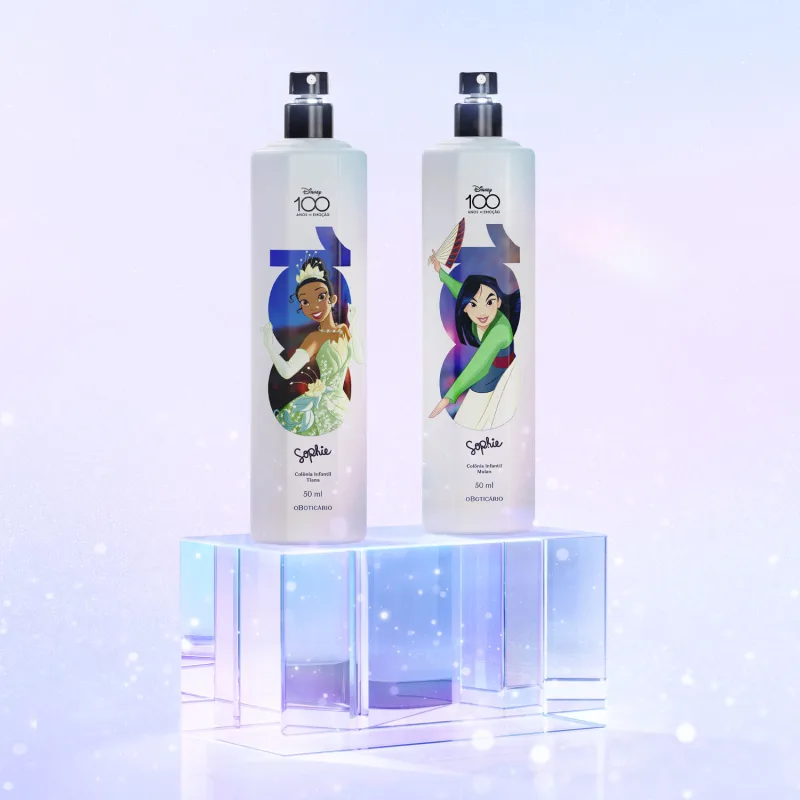Sophie juntou duas princesas para incentivar todos a terem a coragem de seguir seus sonhos. O Kit Duo Colônia Sophie Disney100 foi inspirado na coragem de Mulan* e na determinação de Tiana*, e traz duas colônias infantis de 50ml cada.