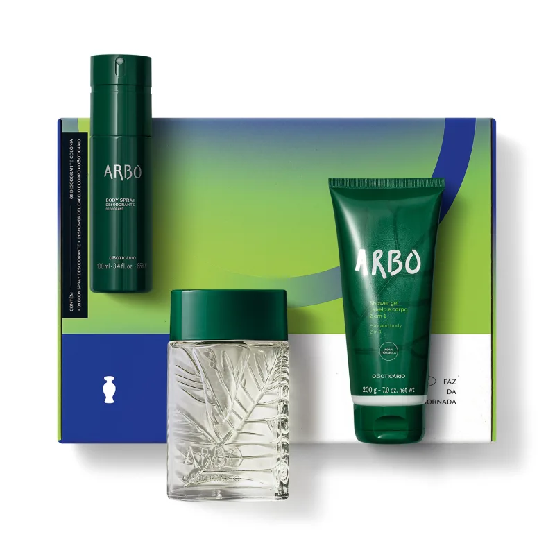 Para presentear o aventureiro que ama estar em conexão com a natureza, o Kit Presente Arbo é um excelente presente e já vem pronto para presentear, com 3 itens que refletem a natureza, o carregador mais potente que existe: uma fragrância masculina fresca, natural e cítrica; um body spray com ação desodorante e um prático shower gel, que cuida do cabelo e do corpo: