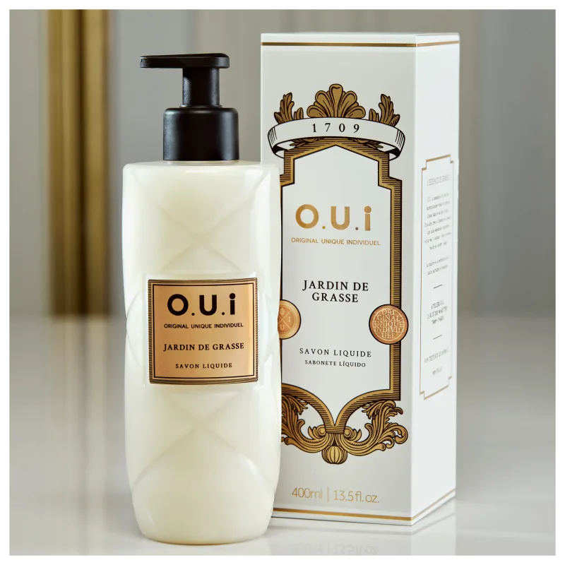 O Savon Liquide Jardin de Grasse O.U.i leva em sua composição L’Essence de Grasse, um óleo essencial criado a partir das cinco colheitas de Grasse, no Sul da França. Rosa, lavanda, mimosa, folhas de violeta e sálvia. Combinadas, representam o savoir-faire da alta perfumaria francesa.